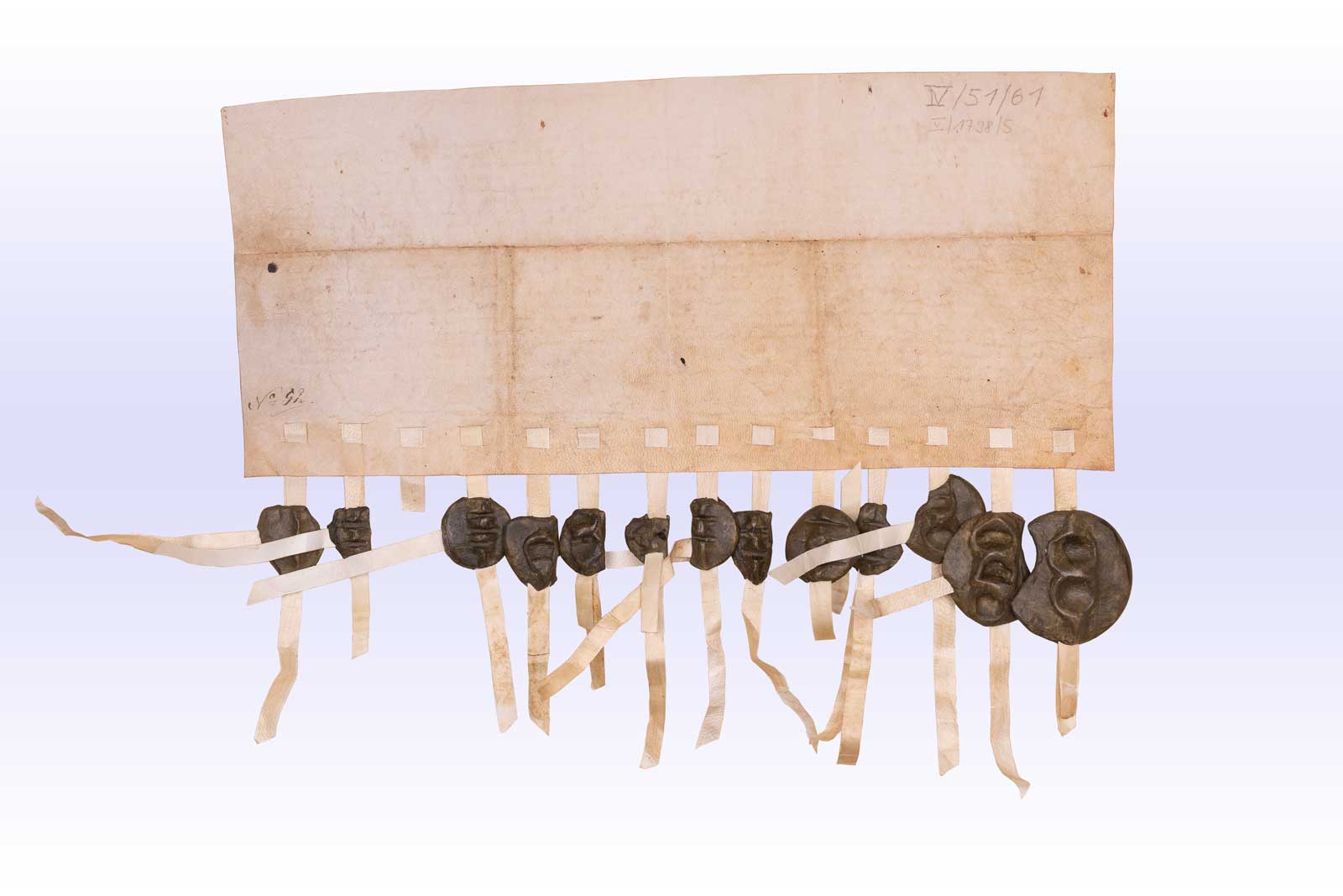 Rückseite | Maße: 62 x 34 cm, 17 von 31 Siegeln ganz oder teilweise erhalten