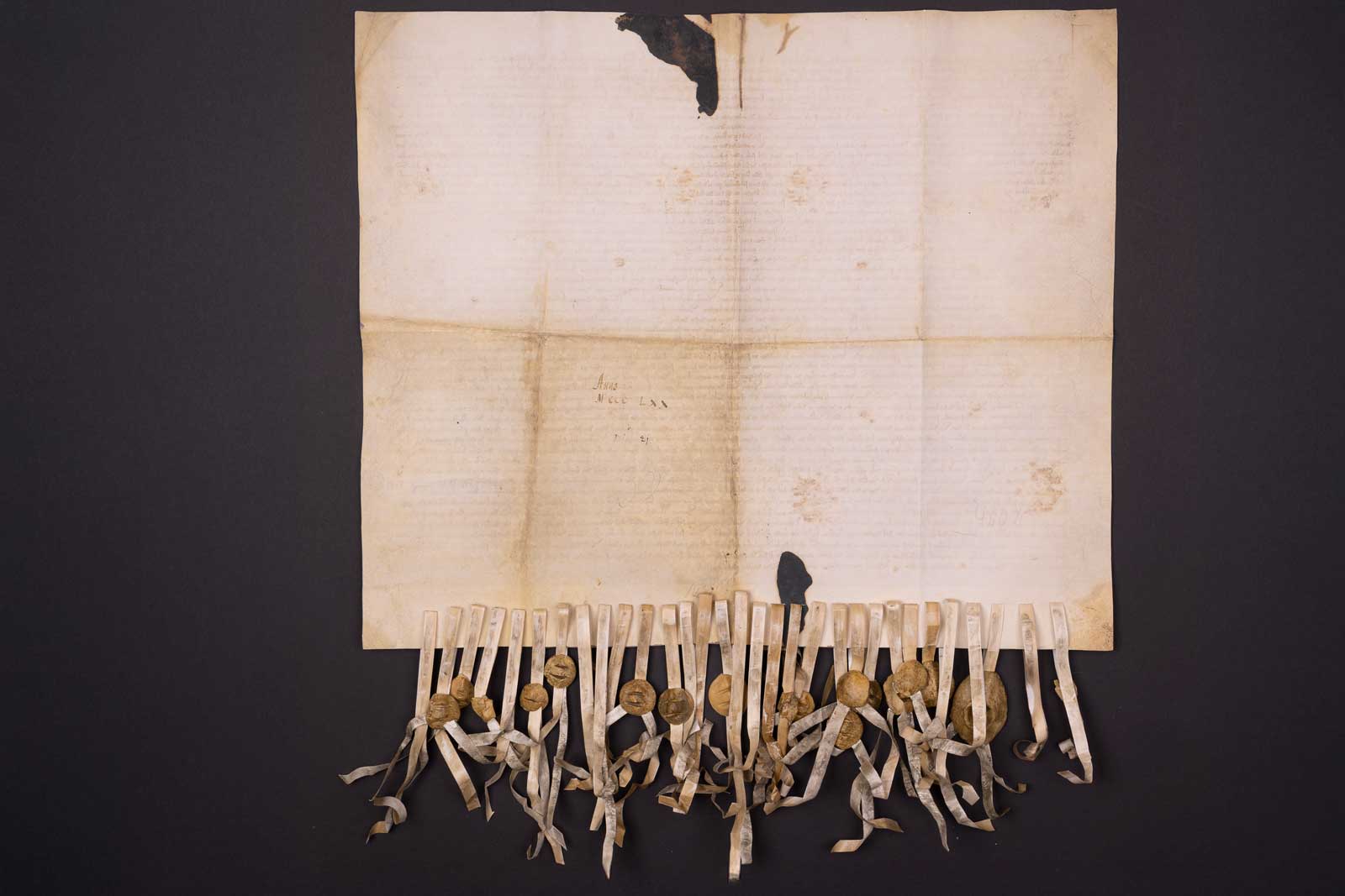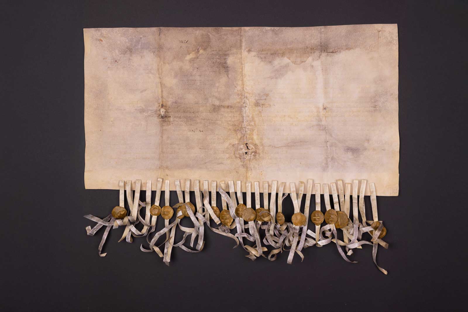 Rückseite | Maße: 56 x 48 cm, 14 von 31 Siegeln erhalten