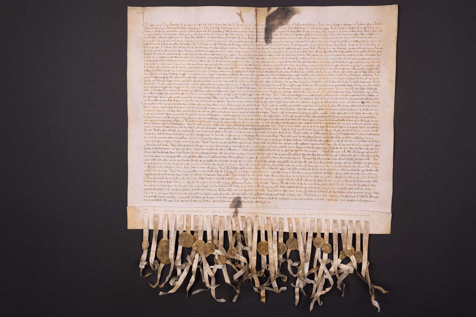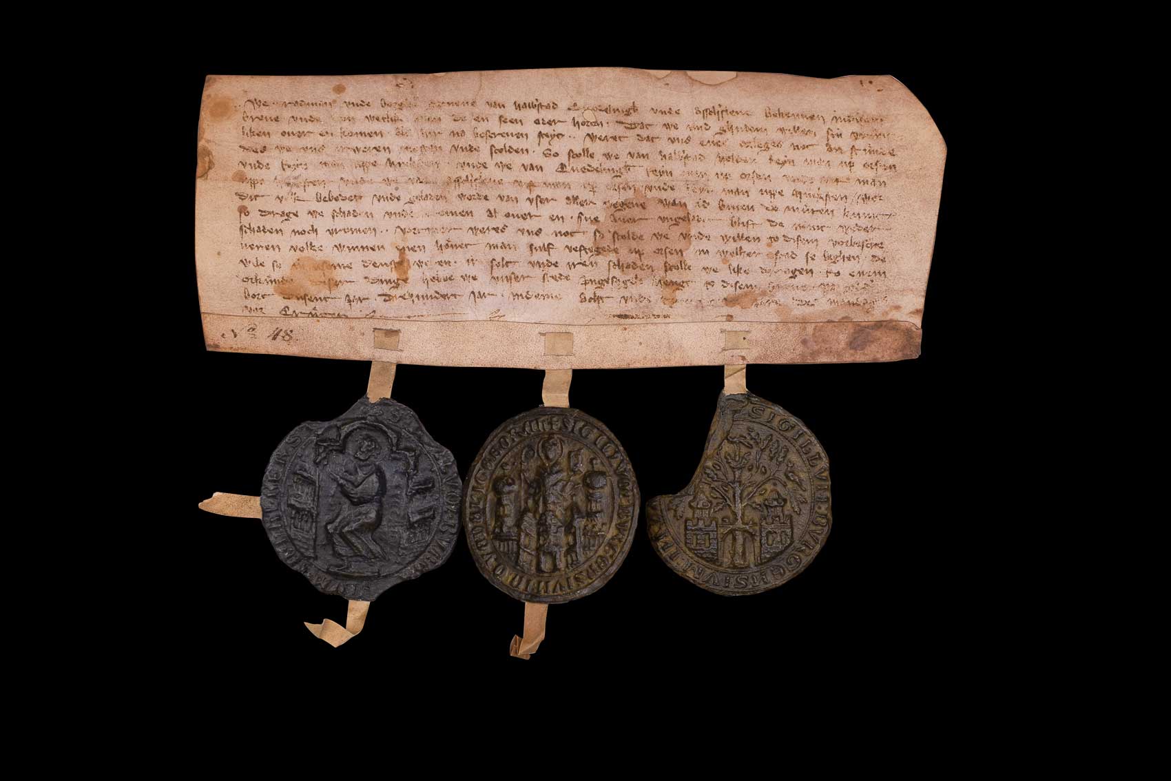Pergamenturkunden mit Wachssiegeln sind ganz außergewöhnliche Zeugnisse der Geschichte. Es verbietet sich allerdings, historische Urkunden in Dauerausstellungen der Belastungen von Licht, Klima oder der Gefahr des Diebstahls auszusetzen. Unsere Faksimiles von Urkunden und Siegeln werden Sie überzeugen. Unsere Scans – sowohl der Urkunde, als auch der Siegel erfolgen schonend, berührungsfrei und mit Kaltlicht. Unsere Repliken können objektabhängig aus alterungsbeständigen Papieren oder echtem Pergament gefertigt werden. Ebenso ergibt sich die Möglichkeit Siegel aus echtem Bienenwachs oder im 3D-Druck zu erzeugen. Um Kordeln möglichst originalgetreu nachzubilden arbeiten wir mit Textilrestauratoren, Textilgestaltern und Posamentenmachern zusammen.
