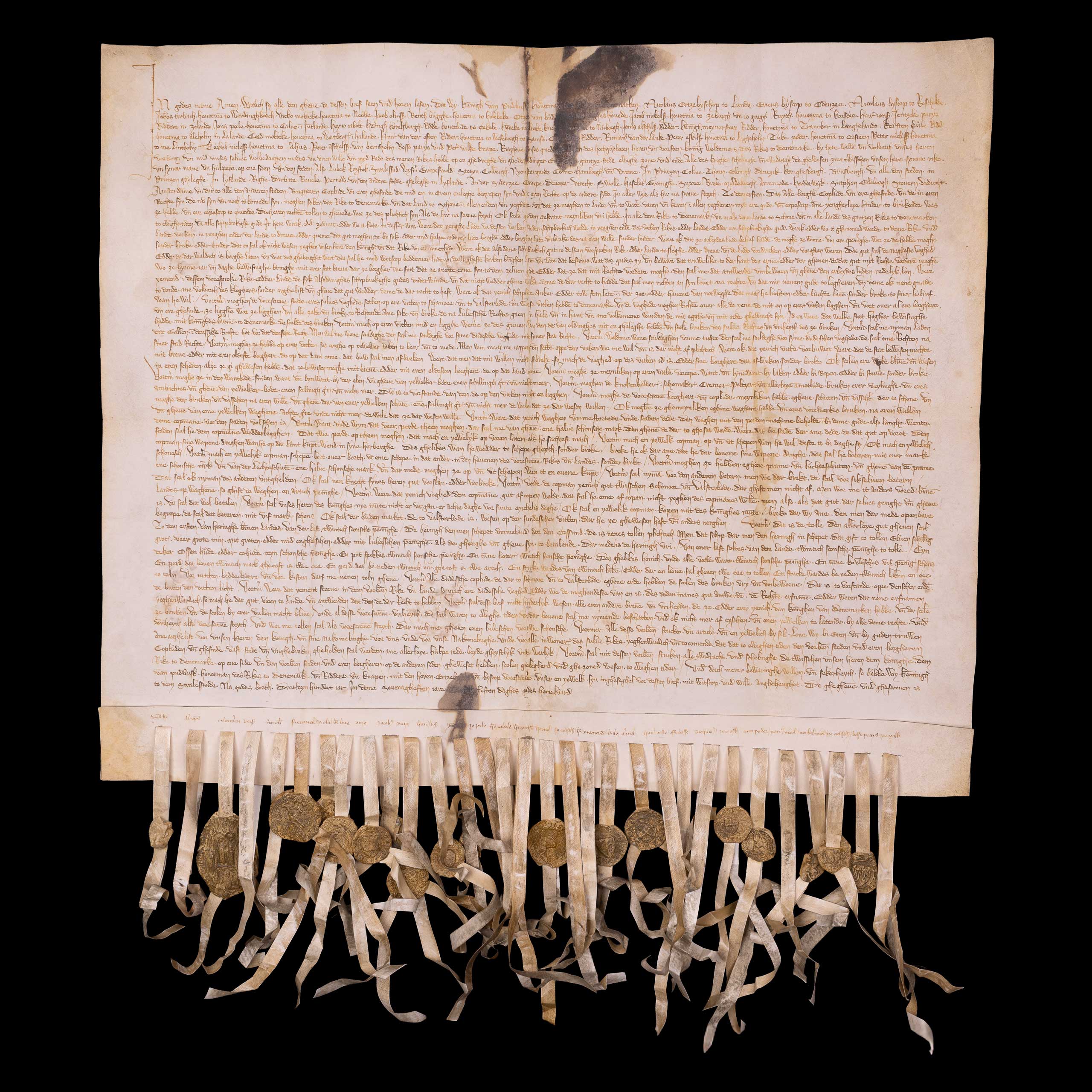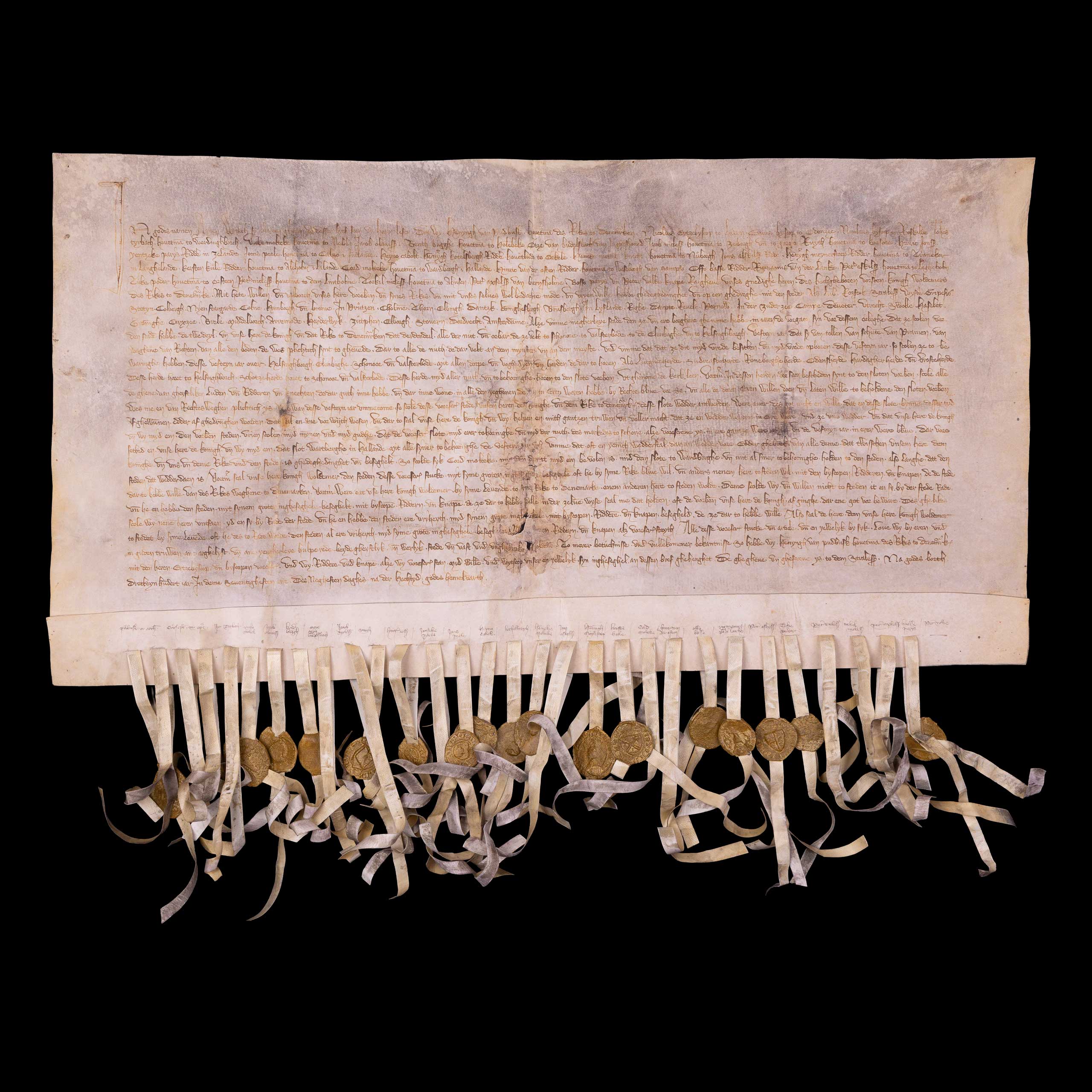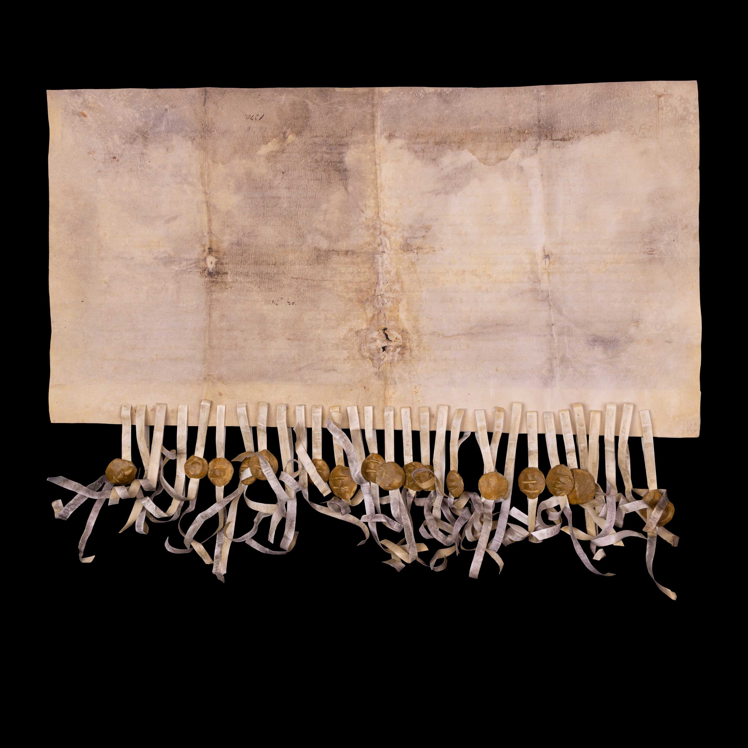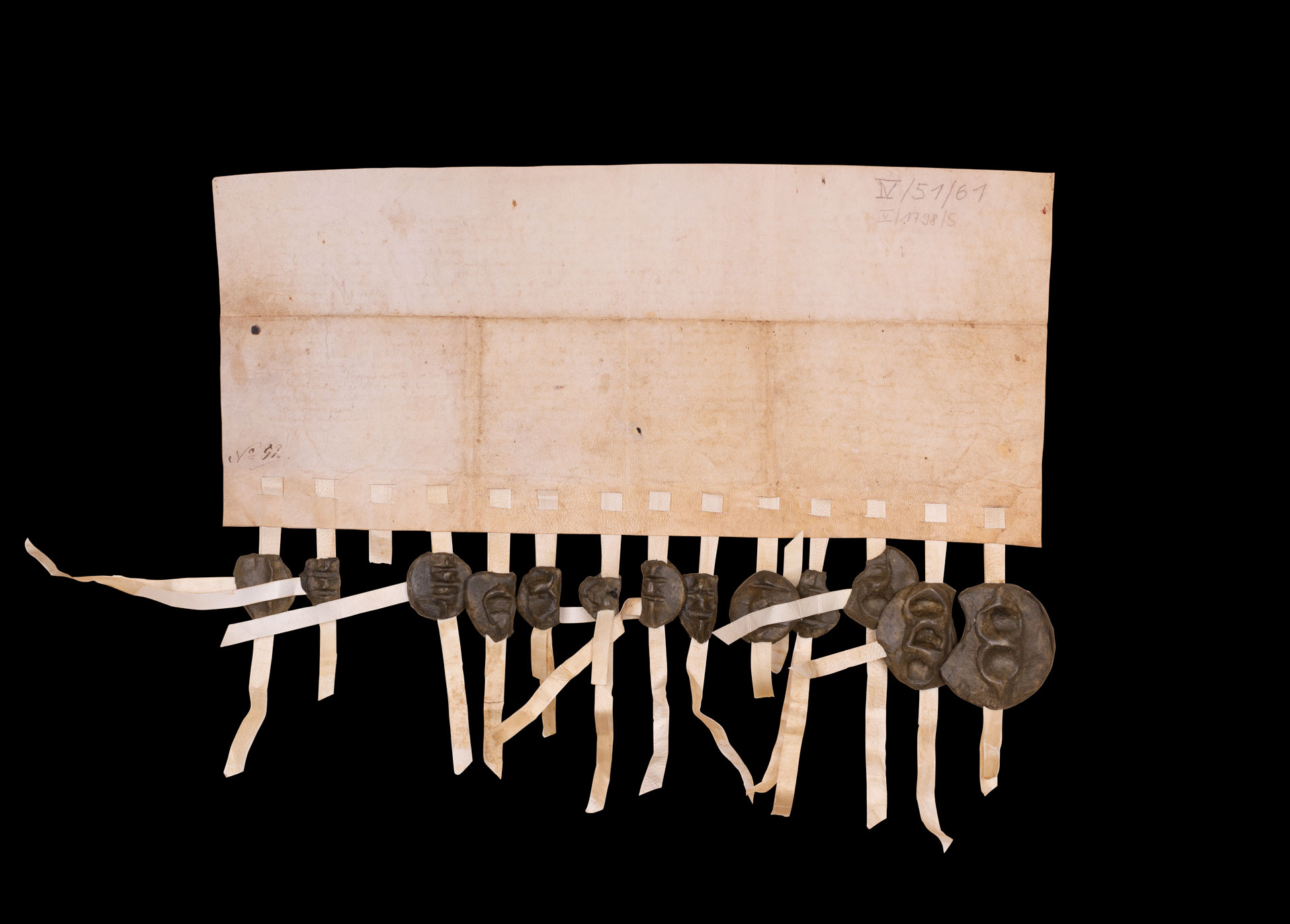 Rückseite | Maße: 56 x 48 cm, 14 von 31 Siegeln erhalten
