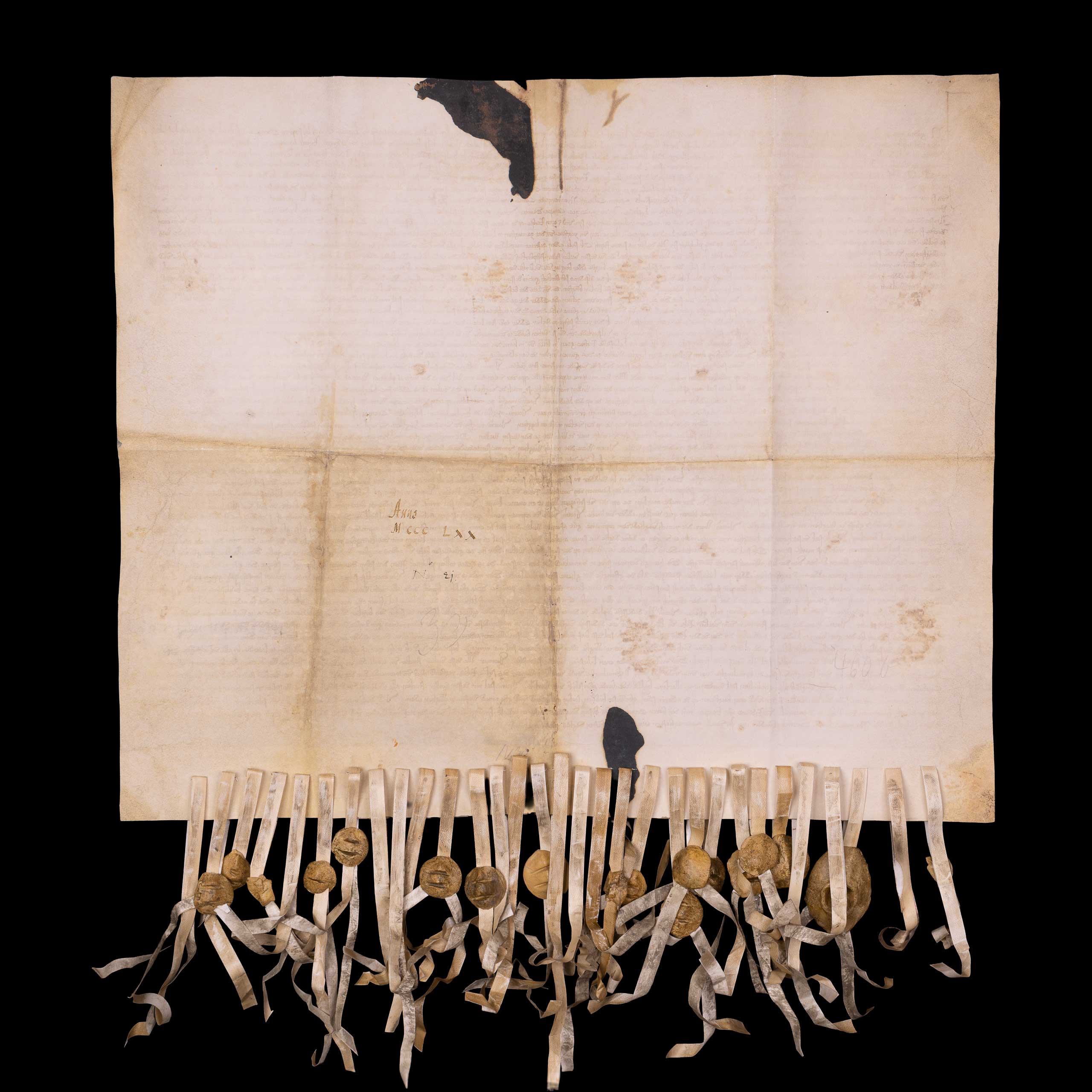 Rückseite | Maße: 62 x 34 cm, 17 von 31 Siegeln ganz oder teilweise erhalten